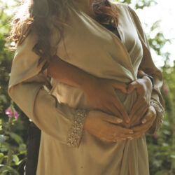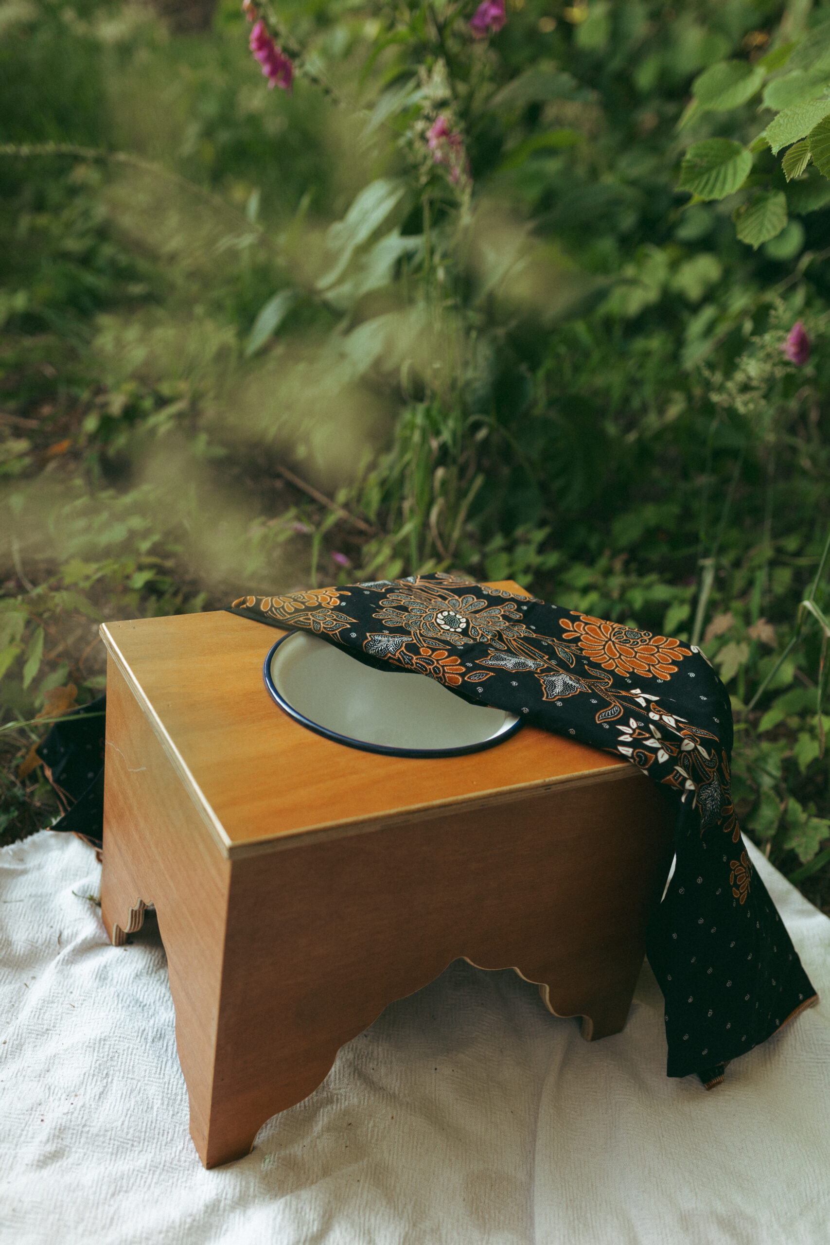 Als afsluiting wordt je buik liefdevol ingebonden met de Bengkung bellybind. Dit biedt fysieke ondersteuning en helpt je lichaam energetisch en emotioneel te omhullen, zodat je je gedragen en gesteund voelt.